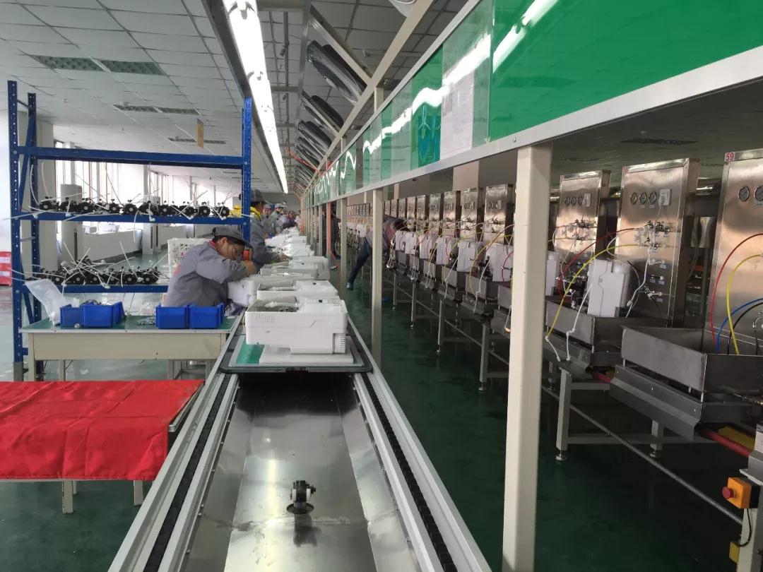 無塵車間內(nèi)配備的國內(nèi)先進的凈水機自動化生產(chǎn)線正處于工作狀態(tài),可編程控制器(PLC)自動、轉(zhuǎn)向、垂直升降輸送產(chǎn)品;自動倍速鏈輸送,節(jié)拍控制,大幅提高了生產(chǎn)效率。榮事達凈水器生產(chǎn)線日產(chǎn)能是一般生產(chǎn)線的3到4倍,在高速運作的生產(chǎn)線上,工人們或迅速熟練地安裝產(chǎn)品零配件;或聚精會神地檢查儀表數(shù)值;或仔細認真地核查包裝箱內(nèi)物品是否齊全,在注重生產(chǎn)效率的同時嚴把產(chǎn)品質(zhì)量關(guān),對每一個生產(chǎn)環(huán)節(jié)的操作都一絲不茍,力求實現(xiàn)產(chǎn)能、品質(zhì)的雙豐收。