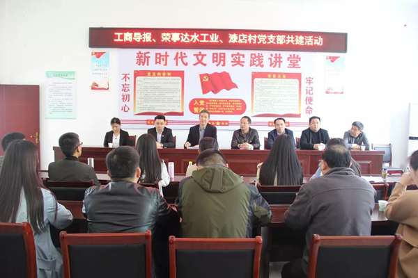 隨后,榮事達(dá)水工業(yè)集團(tuán)同工商導(dǎo)報社就支部建設(shè)情況交流心得體會。榮事達(dá)水工業(yè)集團(tuán)黨支部書記劉漢民講道,此次漆店村扶貧活動,對榮事達(dá)水工業(yè)集團(tuán)和工商導(dǎo)報社是一次很有意義的共建嘗試,通過彼此合作,實(shí)現(xiàn)雙向互動、資源共享、優(yōu)勢互補(bǔ),取得了1+1>2的效果。希望今后雙方可以多開展支部共建活動,在相互學(xué)習(xí)了解中,讓黨建工作更上一個臺階。