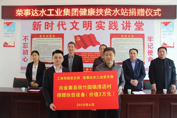 4月12日,榮事達(dá)水工業(yè)集團(tuán)黨支部攜手工商導(dǎo)報社黨支部全體黨員赴金寨縣漆店村開展扶貧捐助活動。工商導(dǎo)報社社長、黨支部書記儲靈,省工商聯(lián)駐漆店村扶貧隊(duì)隊(duì)長張龍祥,安徽省凈水行業(yè)協(xié)會秘書長柳敏,榮事達(dá)水工業(yè)集團(tuán)黨支部書記劉漢民、榮事達(dá)水工業(yè)總經(jīng)理王悅生等領(lǐng)導(dǎo)出席活動。