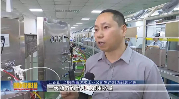 511日—517日為第二十八屆全國城市節約用水宣傳周,為引導廣大市民養成良好的節水習慣,同時推動節水技術在企事業單位發展中的普及,合肥新聞頻道開展“全國城市節約用水宣傳周”系列報道。516日晚2130分,合肥新聞頻道《晚間播報》節目播出新聞《循環利用“節水器”  助力綠色環?!?,就校園直飲水節水建設和企業綠色生產做了專題報道,并走進本土知名企業合肥榮事達水工業公司,見證了領先的凈水及節水技術。