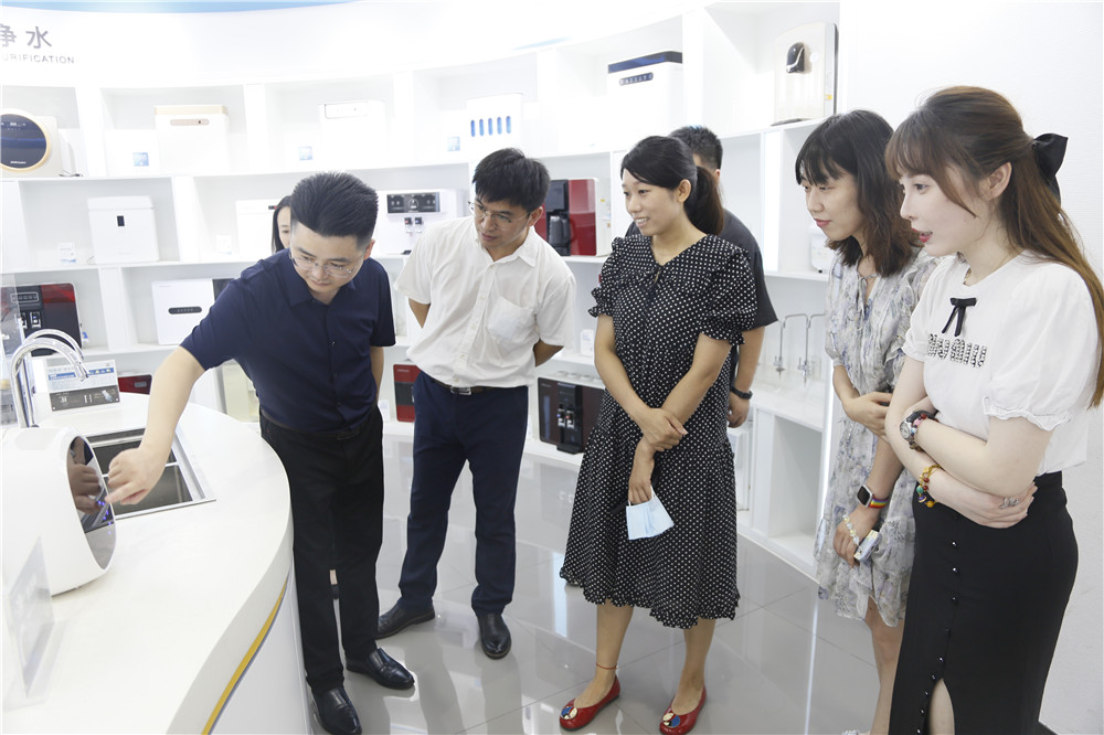 一行領(lǐng)導(dǎo)先后參觀了榮事達(dá)智能化生產(chǎn)車間和智慧水世界展廳,了解榮事達(dá)企業(yè)綜合實(shí)力及十大水處理產(chǎn)業(yè)具體發(fā)展?fàn)顩r,現(xiàn)場(chǎng)體驗(yàn)了企業(yè)最新研發(fā)定制產(chǎn)品與自主開發(fā)的物聯(lián)網(wǎng)校園智慧管理系統(tǒng),并為榮事達(dá)行業(yè)領(lǐng)先的技術(shù)實(shí)力點(diǎn)贊。