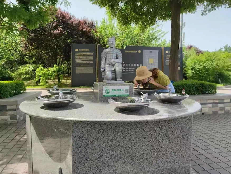 秦始皇兵馬俑博物館直飲水項目,以定制化直飲水系統提升游客飲水安全與便捷性,兼具文化融合、環保減排、文物保護與行業示范價值,是世界文化遺產地公共服務升級的突出案例。設備外觀融入兵馬俑元素與古典色調,申報外觀專利,成為景區"綠色服務"風景線,強化文化體驗。穩定水質與管網運維,避免傳統飲水設施對遺址環境的潛在影響,支撐文物保護體系。展現中國制造在文旅場景的定制化能力,為博物館/世界遺產地直飲水建設提供可復制方案。