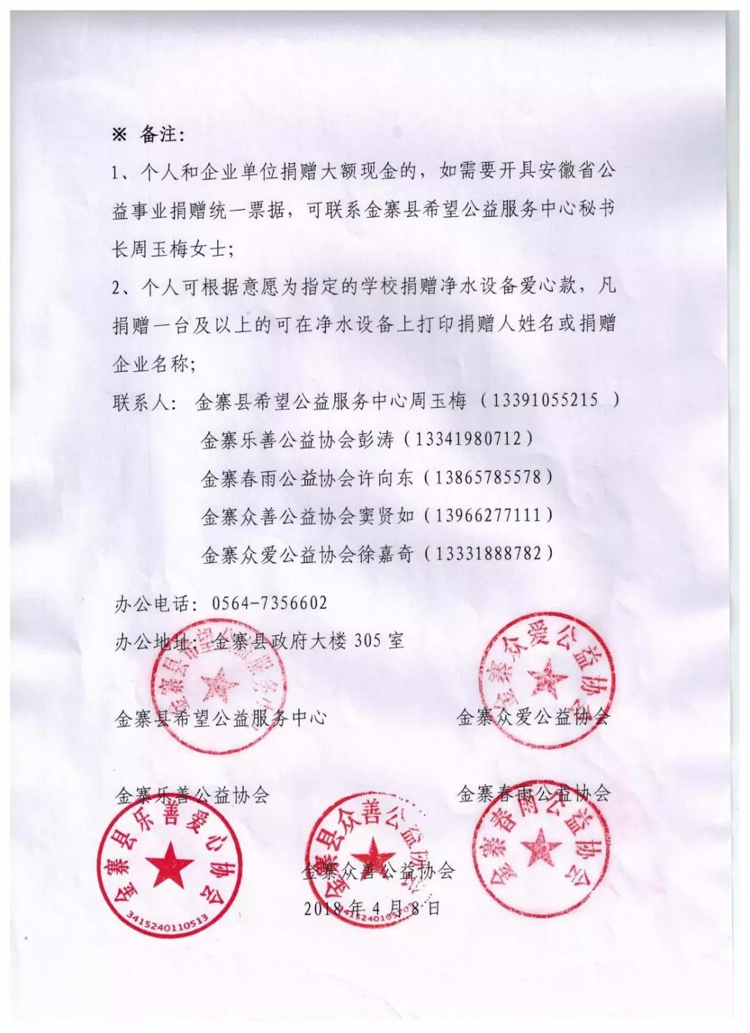 為了使全縣的孩子都能喝上溫暖潔凈的熱水,金寨縣四家公益協會(金寨眾愛公益協會、金寨樂善公益協會、金寨春雨公益協會、金寨眾善公益協會)聯合合肥榮事達水工業設備有限責任公司繼續實施“給山區孩子一杯水”——援建金寨中小學生凈水設備公益項目。