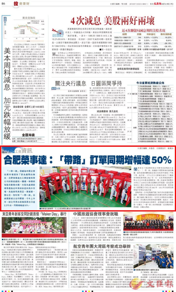 香港文匯報(bào) 《合肥榮事達(dá) “帶路”訂單同期增幅達(dá)50%》