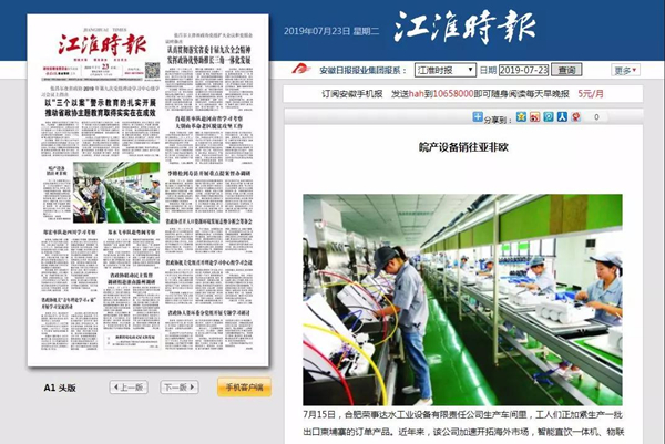 江淮時(shí)報(bào) 《皖產(chǎn)設(shè)備銷(xiāo)往亞非歐》